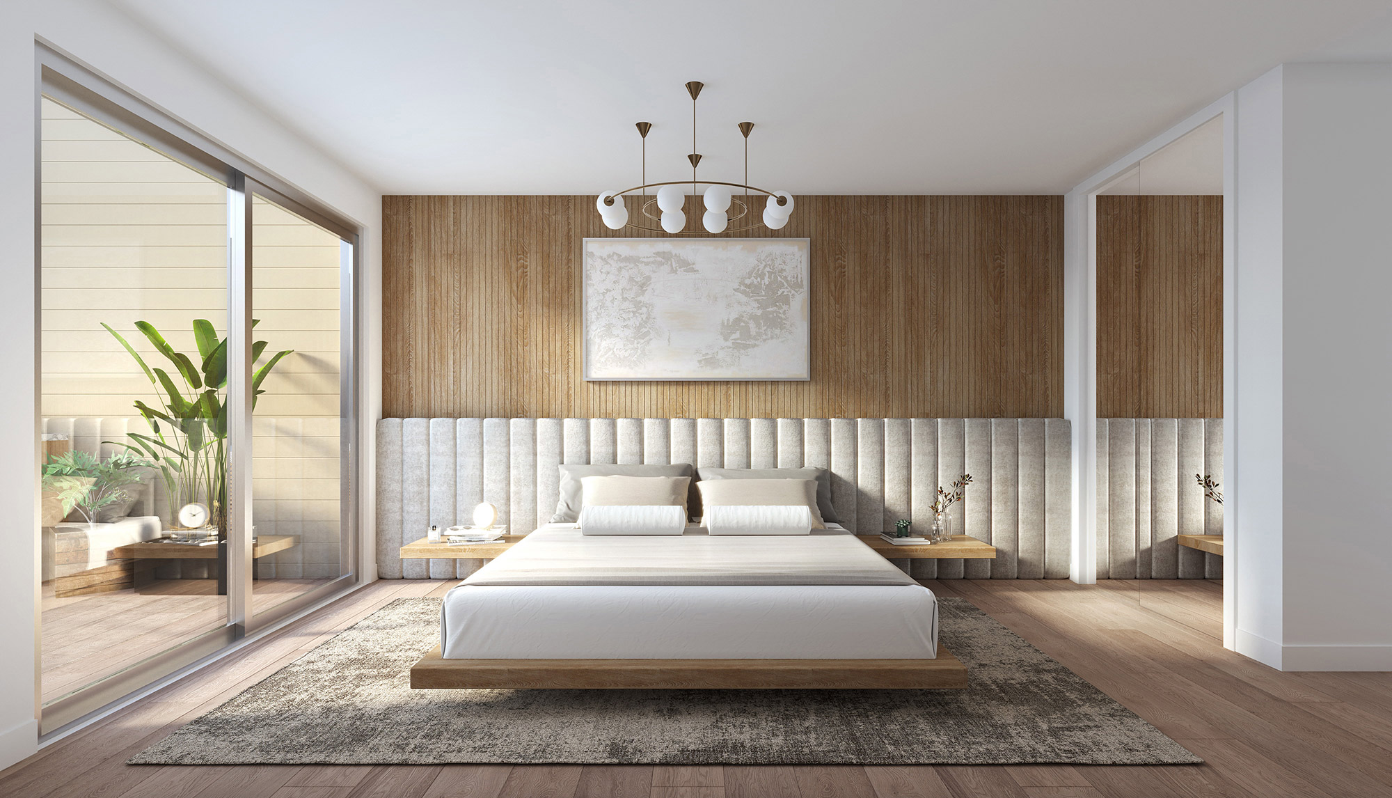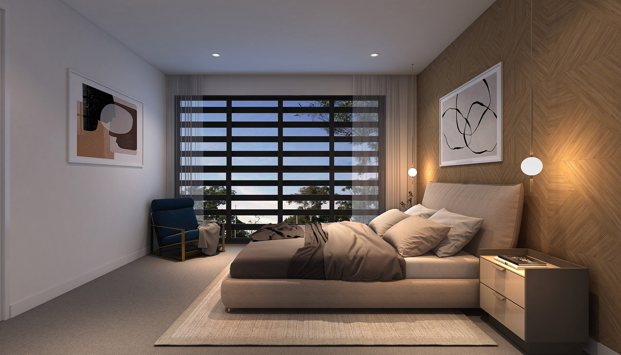 Designer bedrooms elevate what is often considered a standard, utilitarian room into a space of luxury, personality, and retreat. By carefully selecting wall finishes whether textured panels, feature cladding, or bold paintwork paired with premium flooring such as timber, stone, or plush carpet, a bedroom becomes a statement of style rather than simply a place to sleep. The integration of adjoining walk-in robes further enhances this transformation, turning storage into a seamless design element that adds both function and sophistication. Showcasing these details in 3D renders allows clients to appreciate how materials, finishes, and layout choices can completely redefine the atmosphere of a bedroom, presenting it as a curated sanctuary rather than a typical room.