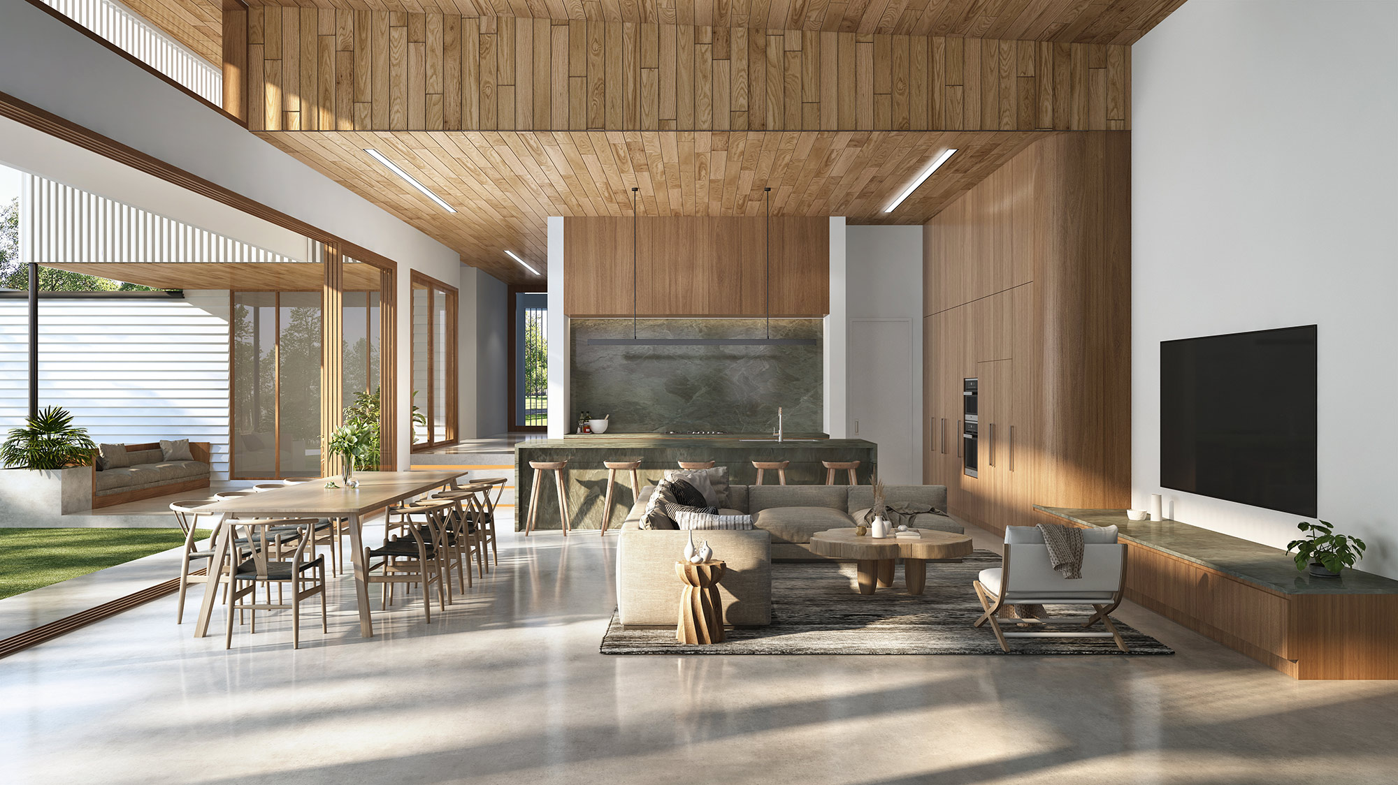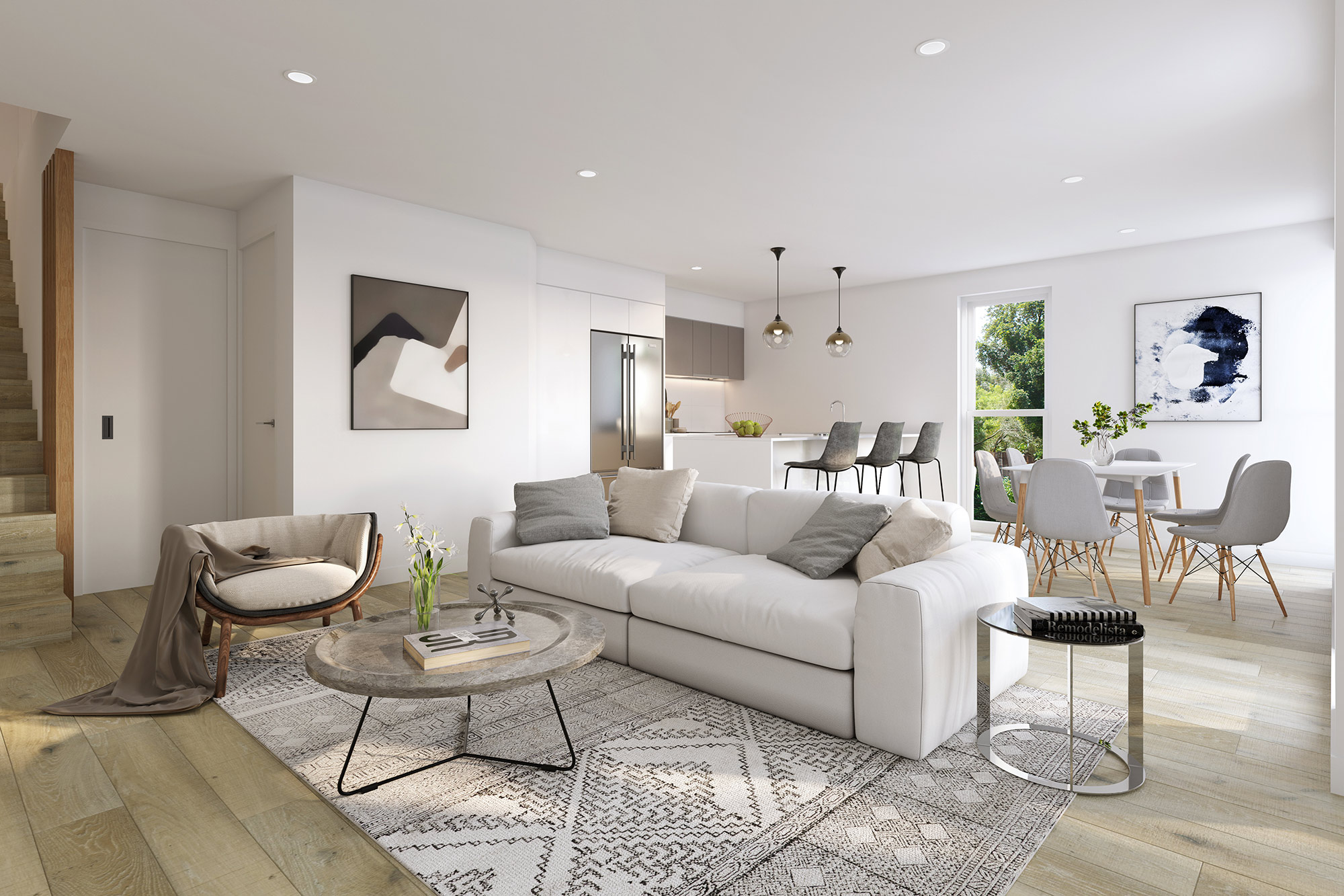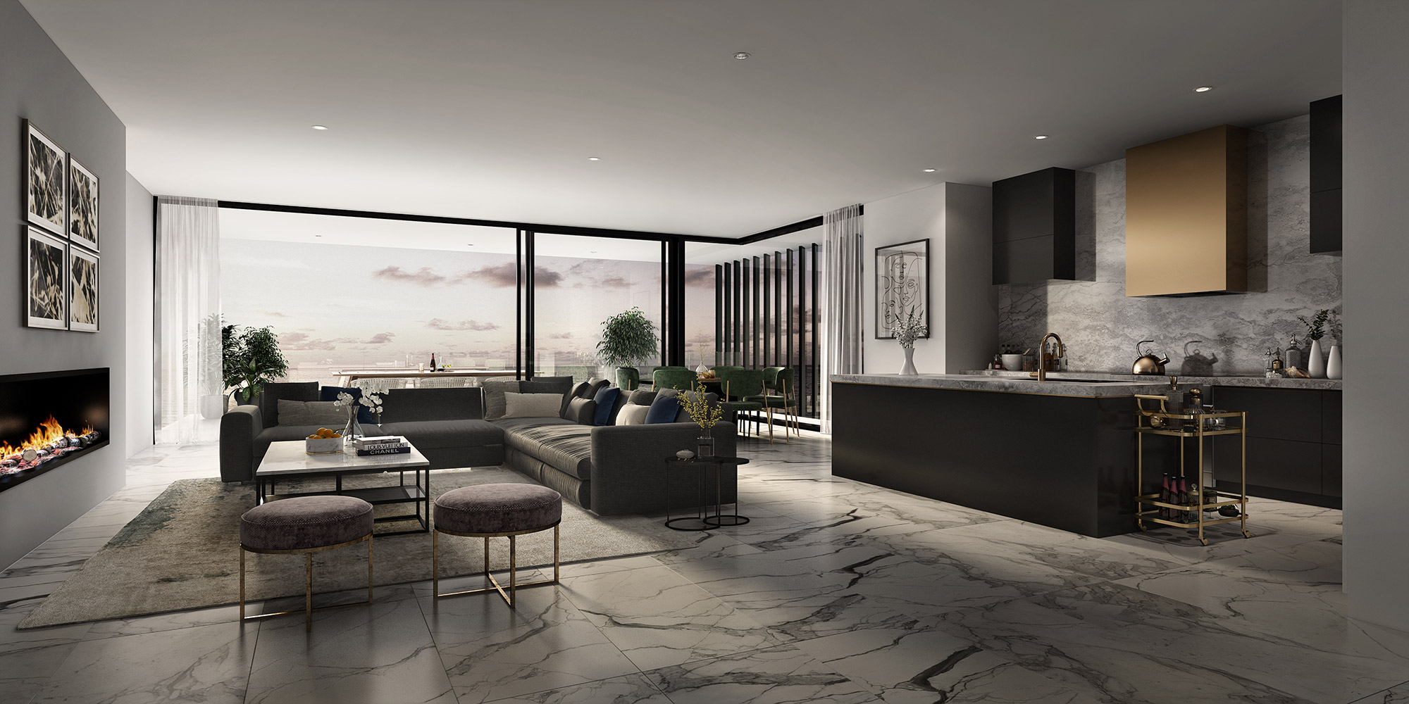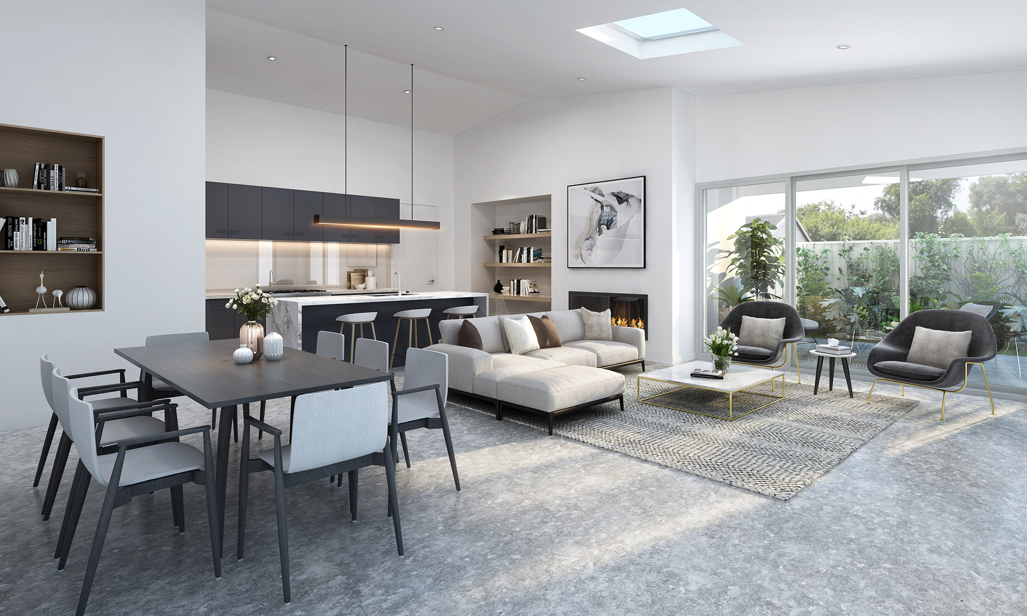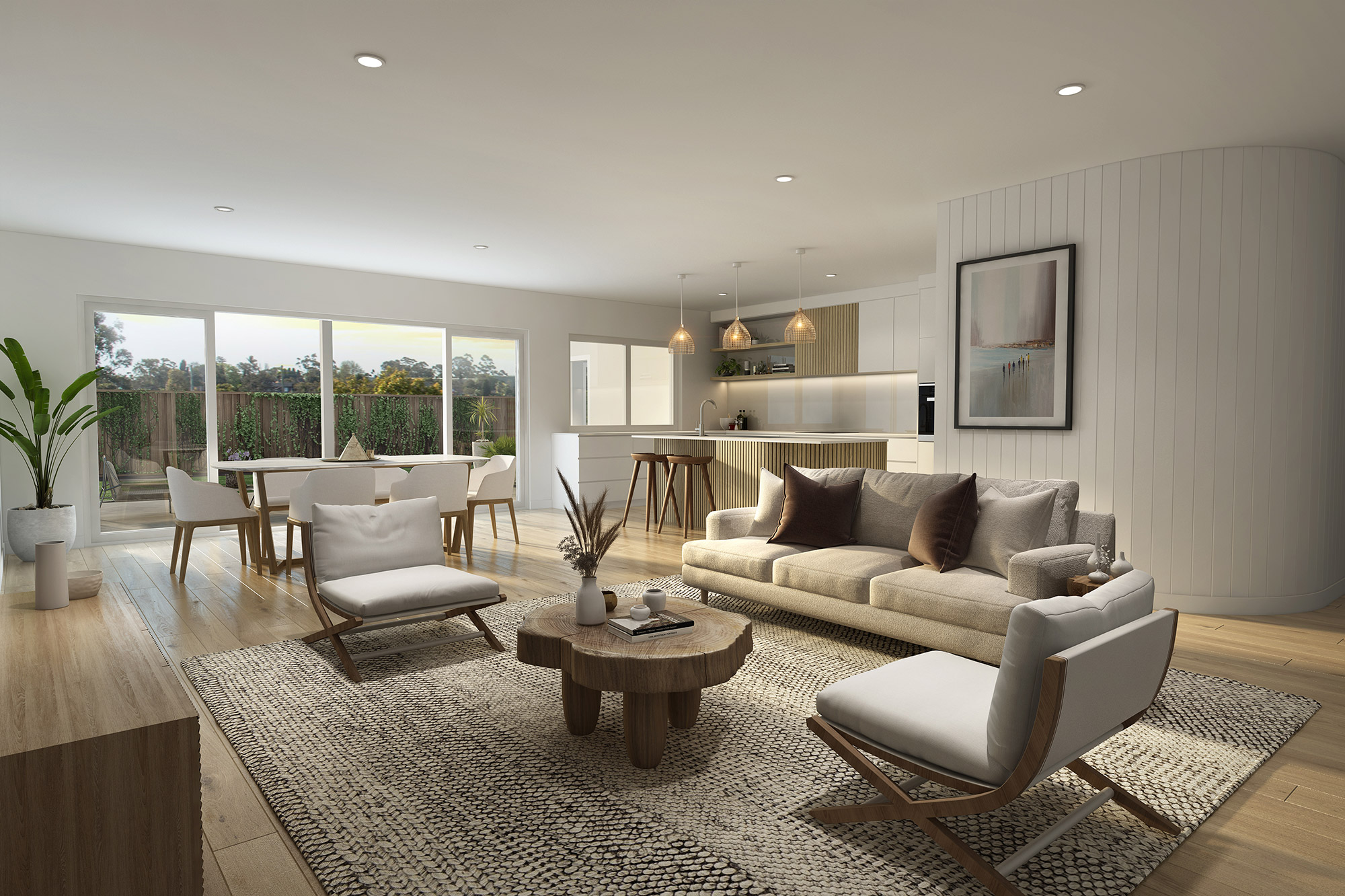 3D renders of Living/Kitchen/Dining areas play a crucial role before building or buying a new property, offering a lifelike glimpse into how these essential spaces will look, feel, and function. These renders help visualise the layout, materials, lighting, and spatial relationships between the key communal zones, ensuring that the design meets expectations and lifestyle needs. They also allow potential buyers to see how furniture and finishes come together in a cohesive flow, fostering confidence in the project’s design. By providing this detailed preview, 3D renders reduce uncertainty and make it easier to refine or adjust the plans early on, preventing costly changes during construction and ensuring the final result aligns with the envisioned home.