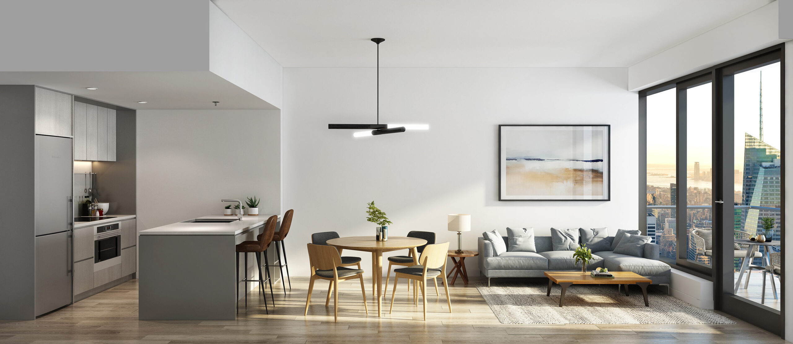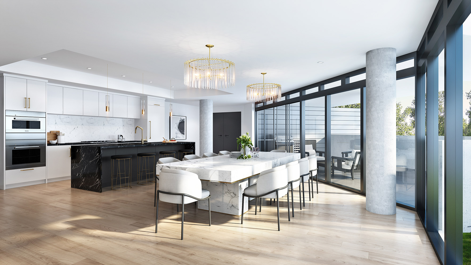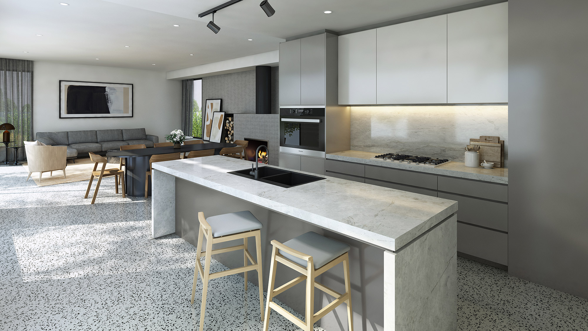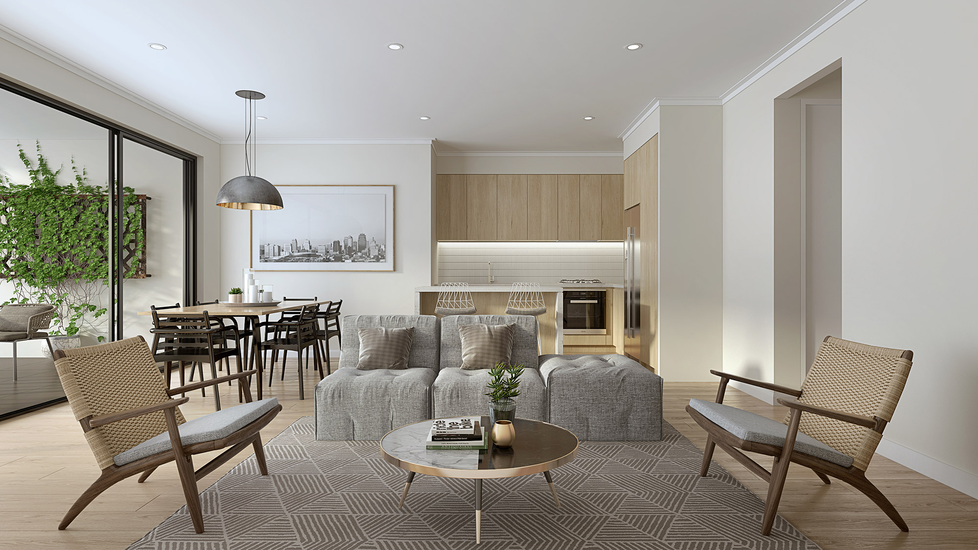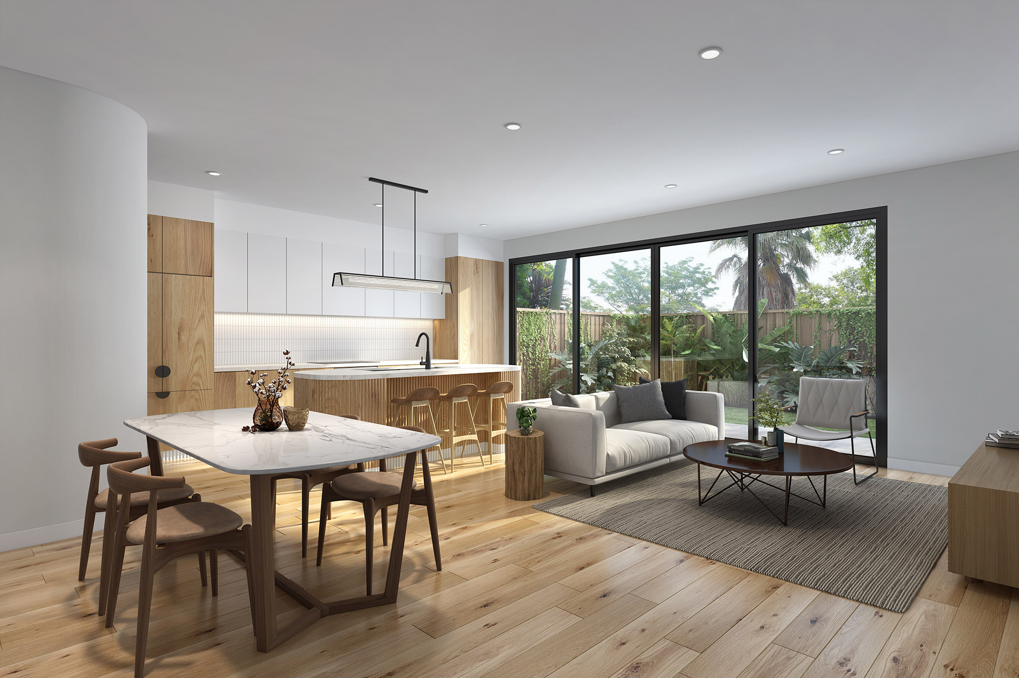 3D renders of Living/Kitchen/Dining areas play a crucial role before building or buying a new property, offering a lifelike glimpse into how these essential spaces will look, feel, and function. These renders help visualise the layout, materials, lighting, and spatial relationships between the key communal zones, ensuring that the design meets expectations and lifestyle needs. They also allow potential buyers to see how furniture and finishes come together in a cohesive flow, fostering confidence in the project’s design. By providing this detailed preview, 3D renders reduce uncertainty and make it easier to refine or adjust the plans early on, preventing costly changes during construction and ensuring the final result aligns with the envisioned home.